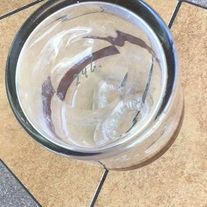 Glass decanter, clear glass with dark wine ring. About 7” high, 3” across. No chips or cracks