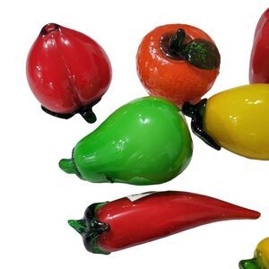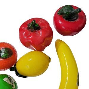 Glass fruit and vegetables Grapes apple pepper banana pear lemon etc. 9 total. Looks like real items. 4.5 lbs