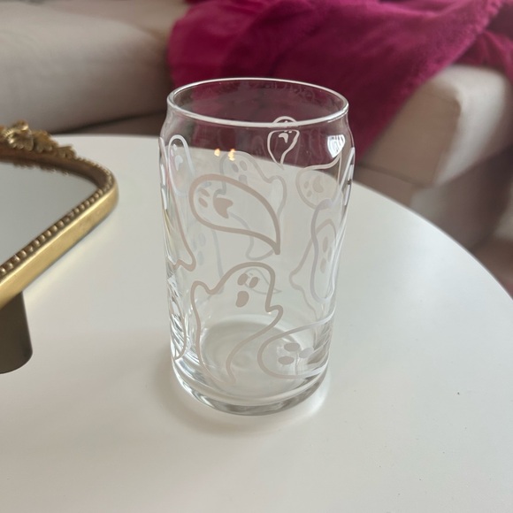 Barely used glass cup featuring ghost vinyl stickers. Great condition.