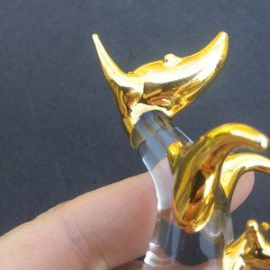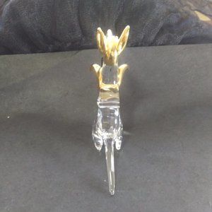 Glass kangaroo with a baby joey in the pouch clear glass with gold accents