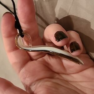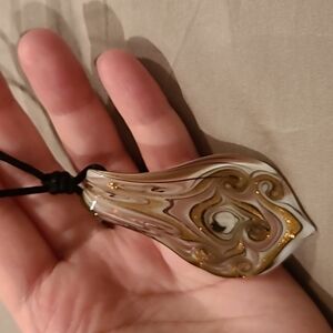 brand new in box glass pendant gold brown black and white swirls black adjustable cord necklace