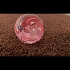 Beautifully hand blown glass ring holder brand new condition, bright and colorful eye catching on a windowsill bathroom counter or bedroom bureau.