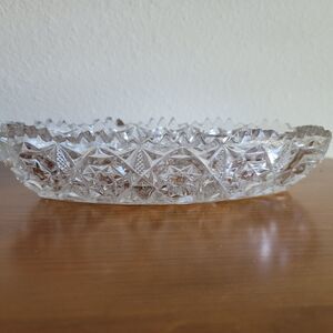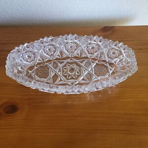 Glass spiked thick clear candy trinket dish serving platter tray retro vintage