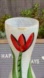 Swedish Art Glass vase, from the artist collection designed by Ulrica Hydman-Vallien for Kosta Boda. Instantly recognizable as an Ulrica HV piece, this vase is a celebration of life; adorned with a red hand-painted tulip specially designed to fit the sensuously cinch waisted milky white form, it is love and desire with distinctive individualism.