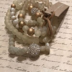 Cute 4 piece bracelet set. Has Rhinestone and gold and glass beads. Elastic stretch bands.