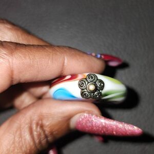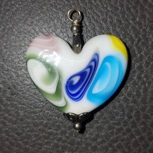 Beautiful multicolored glass heart pendant apx 1" x 1 1/2"