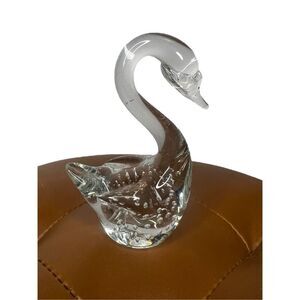 Glass Swan Paperweight Hand Blown Clear Art Bubbles 4.25”
