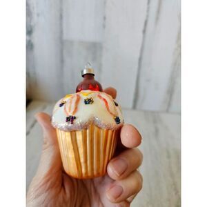 Glass cupcake baker baking ornament Xmas tree vintage