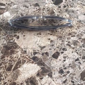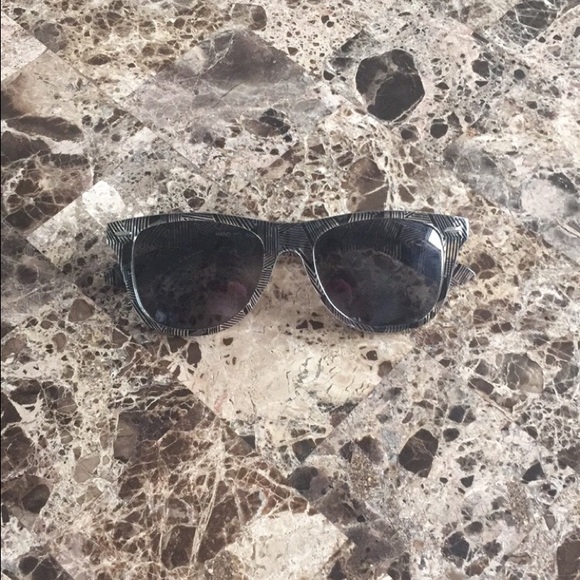 Very dark almost black lenses. The rest is clear with black stripes going different ways