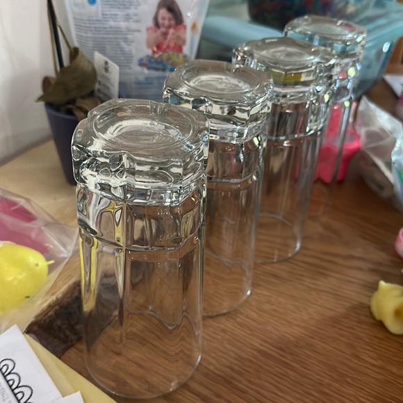 Set of 4 drinking glasses. Square on the bottom. Heavy duty