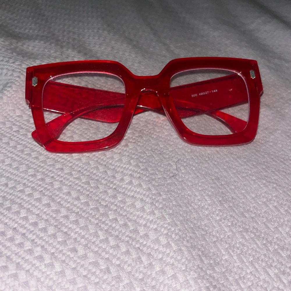 Red framed glasses