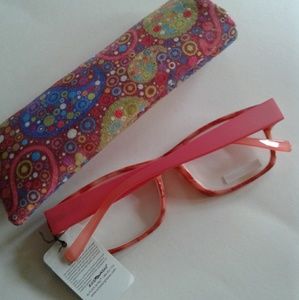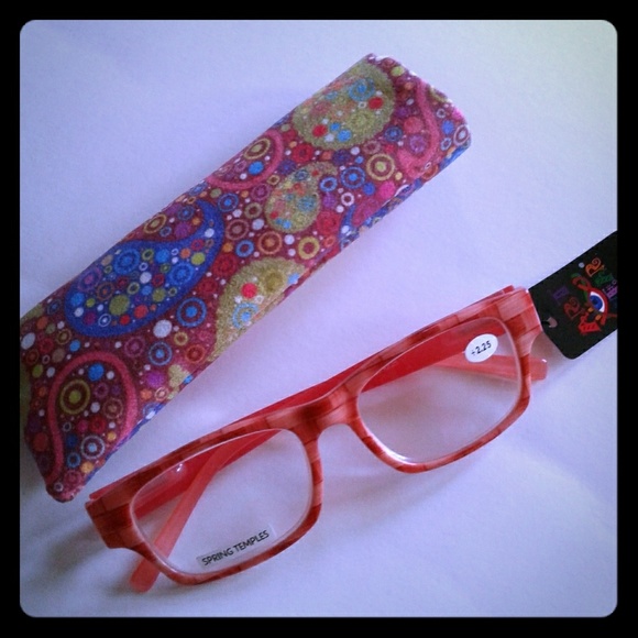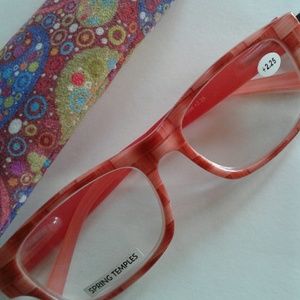 Glasses, reading glasses, coral colored, spring temples, +2.25