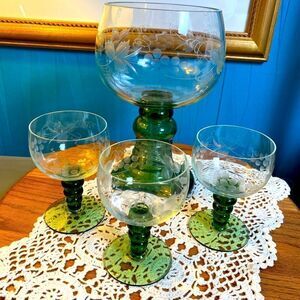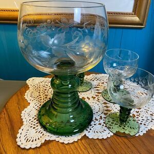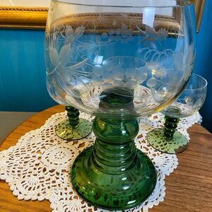 Glasses Wine Roemer hand Blown set of 3 with extra Lg glass ice fruit snacks?
