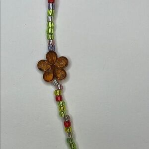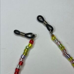 This charming floral beaded glasses holder features vibrant yellow and brown flower accents. Perfect for adding a touch of elegance to any outfit!