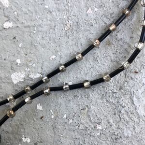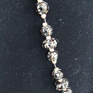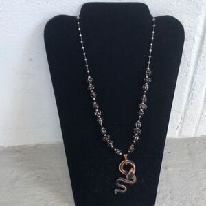 Pick this up at an art show many years ago. I believe all the beads to the glass and the larger ones fire painted necklace. Part is about 21 inches Pendant snake snake is 2.75 inches.