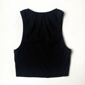 Black, cotton ribbed high neck tank. Raw edge hem. Size M. In great condition only worn once with no damage or staining.