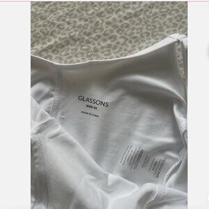 For sale Glassons brand white jumpsuit yoga lounge piece , size XS , one piece top and short, fabric -nylon blend , very good used condition, no flaws, no stains, see all pictures, final sale, no returns.