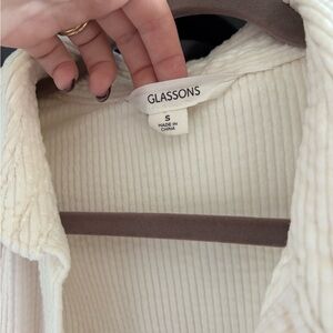 Elegant cream corduroy shirt with a classic collar. Features a ribbed texture.