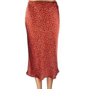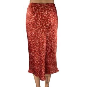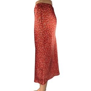 Glassons Red Floral Silk Satin Elastic Waist Flare Pencil Midi Slip Skirt Size 8