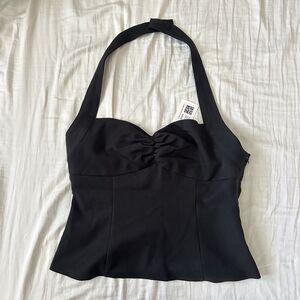 Glassons Ruched Tailored Halter Top In Black US Size 6 NWT
