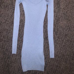 glassons sky blue long sleeve mini dress cut out detail ribbed