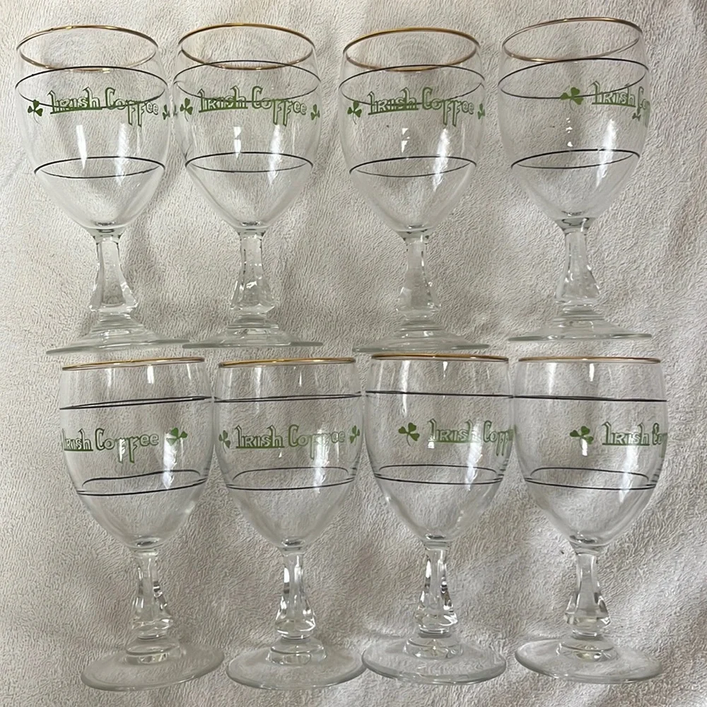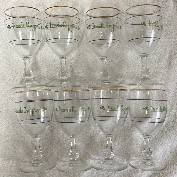 8 Irish Coffee Glasses Nice condition Gold rimmed Tiny dent as shown in picture