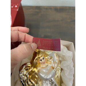 Glassware Art Studio Blown Glass Angel Christmas Ornament Made in Poland 6"
