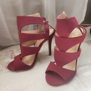 Elegant burgundy heels. Strappy design. Perfect for any occasion.