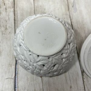 Glazed Bisque Porcelain open Lace Candle Luminary Candy Dish Trinket Box with Grapes and Leaves Pattern