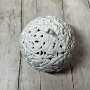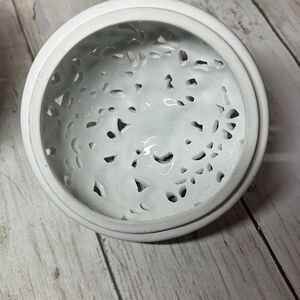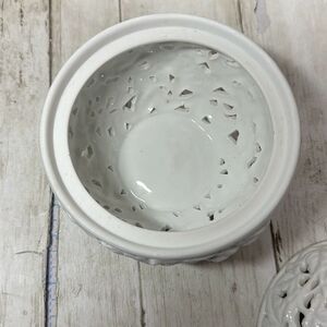 Glazed Bisque Porcelain open Lace Candle Luminary Candy Dish Trinket Box