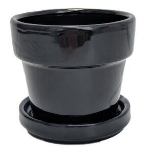 Clean style with attached saucer. Felt feet to prevent surface scratching. Great for all house plants. Bright glaze. Measures 4.5″ x 4.25″.