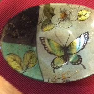 No chips, no cracks, no stains. A few tiny white markings on the back. Minor fading of black color around edge, barely visible. Beautiful vibrant colors!
