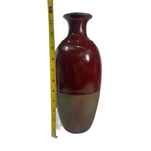 Glazed Ceramic Vase With Clay Pottery Bottom Half TableTop Home Decor Art Deco