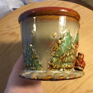 Glazed Stoneware Pottery Christmas Cardinals 3D Coffee Mug