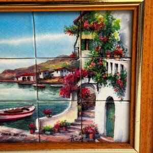 Glazed Tile 1.25 x 1.25" Paint of Mediterranean Coastal Scene Costa Del Sol Ruz Spain Framed by Creations Velasco Signed. Pre-owned item in good condition, has some wear as you'd expect from a used item. Slight imperfections noted on frame due to use and age review pictures. Great home decor. Please use the zoom feature to determine shape and condition, check all pictures and measurements carefully for detailed viewing as they are part of the description and help you with your purchase. I invite you to always check my new listings, buy with confidence. Smoke free home. Thank you, have a wonderful day!!