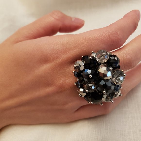 Ali Khan, gleaming beaded cluster ring. Adjustable ring size: 2" - 2.5"