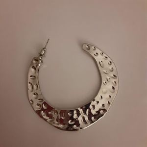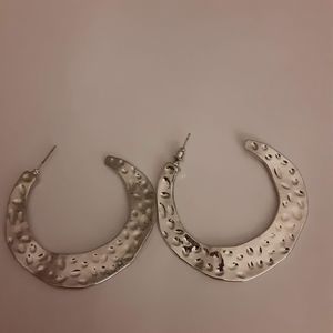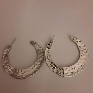 Gleaming silver tone hammered metal stye 2" earrings open hoop tribal