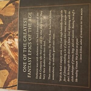 This omnibus edition comprises The Black Company, Shadows Linger, and The White Rose―the first three novels in Glen Cook's bestselling fantasy series.