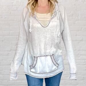 Tissue Fleece Hoodie Women L Pale Pink Glen Arbor Beach Pullover Y2K Vintage