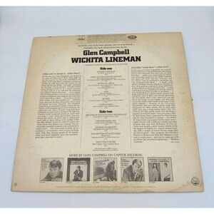 This Glen Campbell LP features the hit song "Wichita Lineman" and comes on a 12" vinyl record. The record label is Capitol and the speed is 33 RPM. The album has received a Gold Record Award and is a great addition to any country music collection. The artist is Glen Campbell and the genre is country. This LP is in nice condition and perfect for playing on your record player.