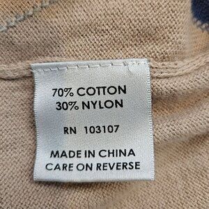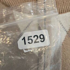 This Glen Echo Golfsweater features a classic argyle pattern in beige, blue, and white, offering a timeless and sophisticated look. Its zip closure provides easy wearability and an adjustable neckline. • Glen Echo Golf Mens Large Sweater Chest 46, Length 30, Sleeves 27, • Ribbed cuffs and hem • Large size tight knit 1/4 Zip logo • Argyle pattern Tan Blue White • Zip closure Long sleeves hipster, Golf, Dad, Office, Nerd, Career, tight knit, Argyle, 1/4 Zip, logo,