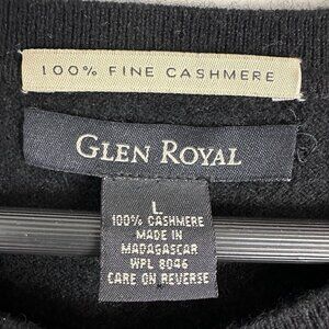 Glen Royal 100% Fine Cashmere Sweater Mens Large Black V Neck Pullover
