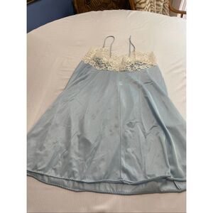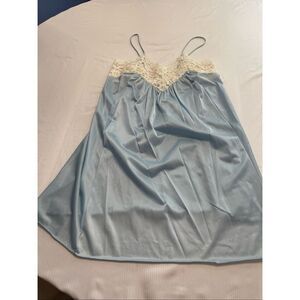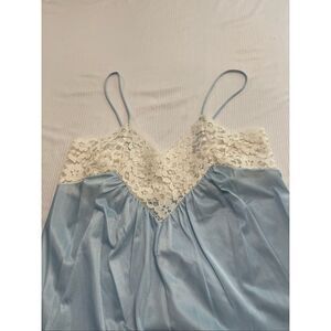 Glencraft Women’s Vintage Blue White Lace Slip Nightgown Size Medium