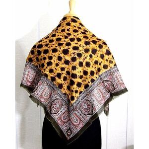 Glentex Bold Aztec Print Striped Metallic Shimmer Shawl Scarf EUC OS 46" x 46"