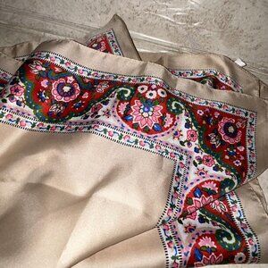 Glentex Vintage Gold Rectangle Red Floral Paisley Trim Polyester Italy Scarf