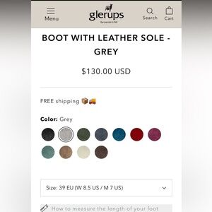 Glerups Boot Slipper with Leather Sole Size 39 W8.5 M7
