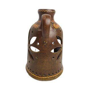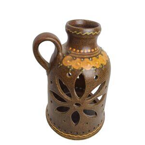 Gliaud Barbeit Scandanavia Pottery Candle Holder Jug Carved FLOWER PAINTED 7"