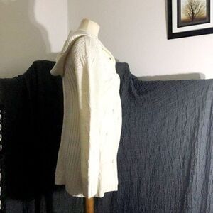 Cream color, knit hooded sweater. Buttons front closure. Pre-owned in good condition. Please refer to pictures for best description and condition verification.