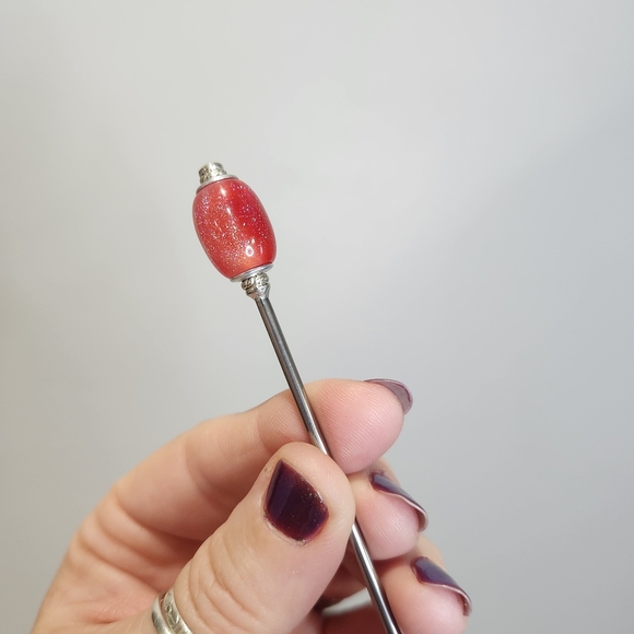 Glimmercore Crimson Spell Stainless Steel Hair Stick Red Sparkle Charm Updo Pin