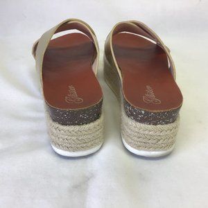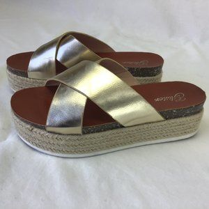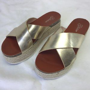 Glister Women's Sandals Gold Metallic Platform Sandals Slip On Shoes Sandals Women's Size 8~ Good Condition~ Attractive Burlap and Cork Embellished Platform Heels~ Super Cute~ Stay Safe 2020~:)
